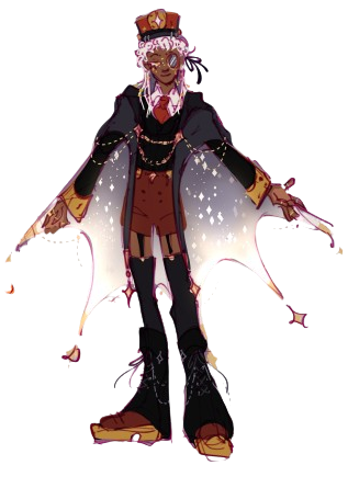 akivili is a rather tall person, standing at about 5"9 feet tall. THEY have long curly silverish hair that seems to glow in the moonlight. THEIR skin is on the darker shade, adorned with freckles that are shaped like and glows like stars in the midnight sky. THEY have bright golden eyes and long white lashes. and though THEY don't let it show quite often, THEY have big black crooked horns that fade to a starlight silver and a long translucent tail. **THEIR cape also acts as 'wings' for the aeon